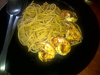 While pasta is boiling, grill the prawns for 2 minutes a side.